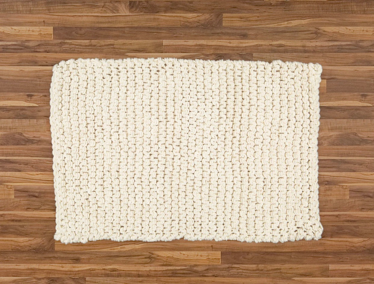 Chunky Knit Bathmat Dhurrie, Natural.