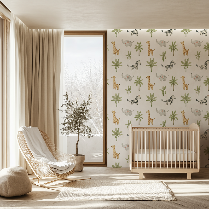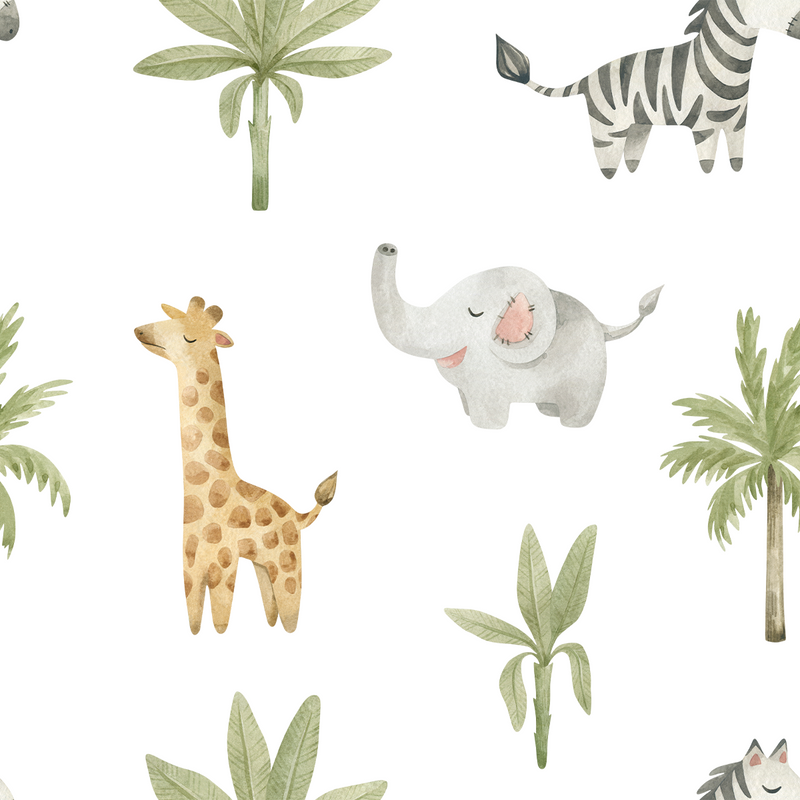 Giraffe, Zebra and Elephant Wallpaper